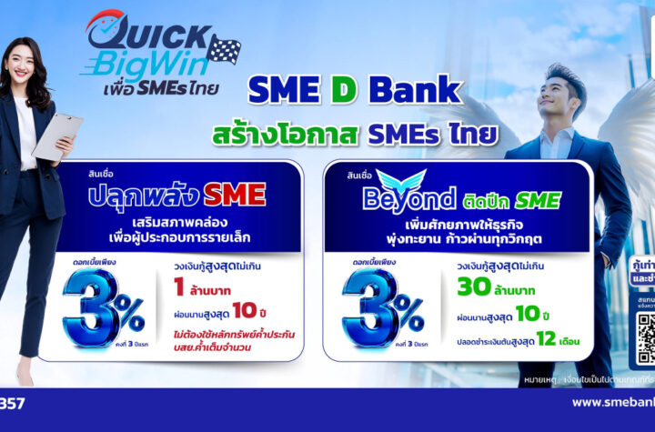 SME D Bank ขับเคลื่อนนโยบายรัฐ ทุ่ม 2 หมื่นล้าน เปิดตัวคู่หูสินเชื่อสุดพิเศษ ดอกเบี้ยต่ำเพียง 3% ต่อปี ติดปีกเอสเอ็มอีเข้าถึงแหล่งทุน ปลุกพลังเศรษฐกิจไทย ...